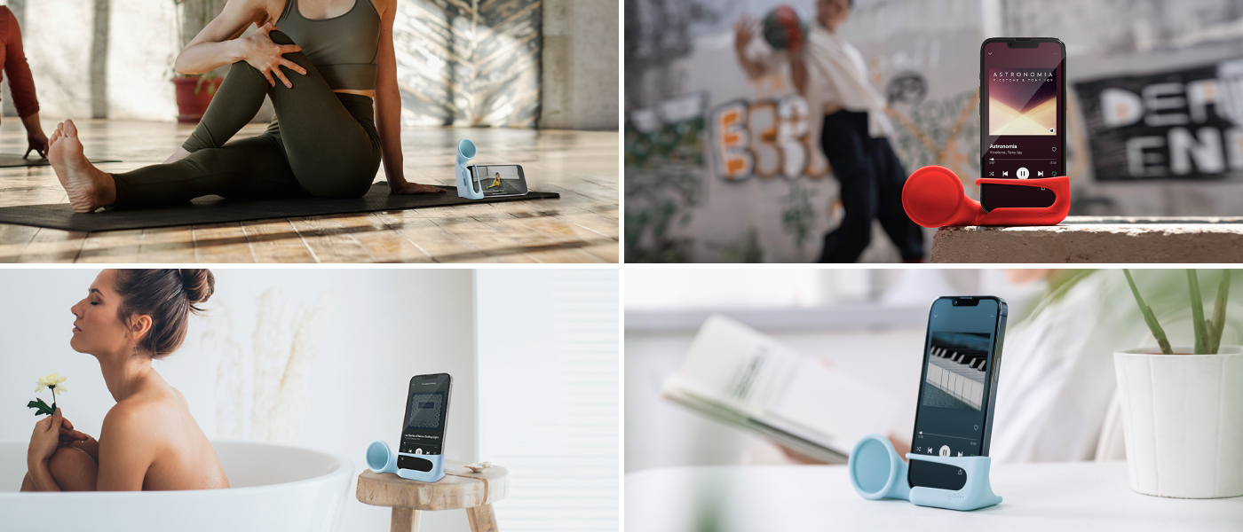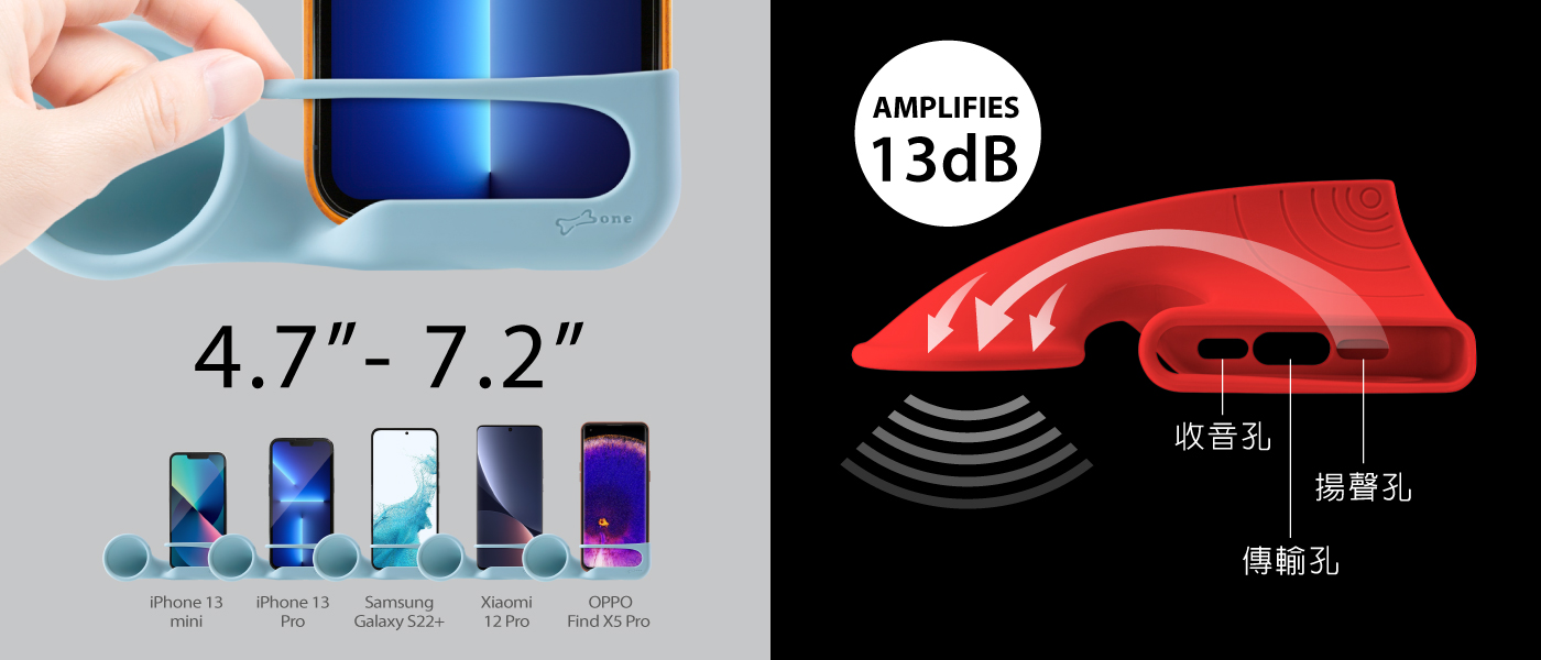 無電環保擴音座,利用聲音反射原理,有效提升13分貝手機音量;通用綁帶設計,適用4.7吋 - 7.2吋 各品牌手機。