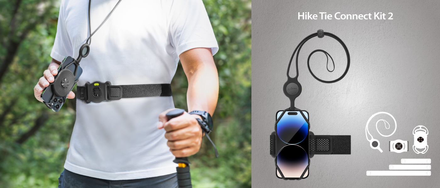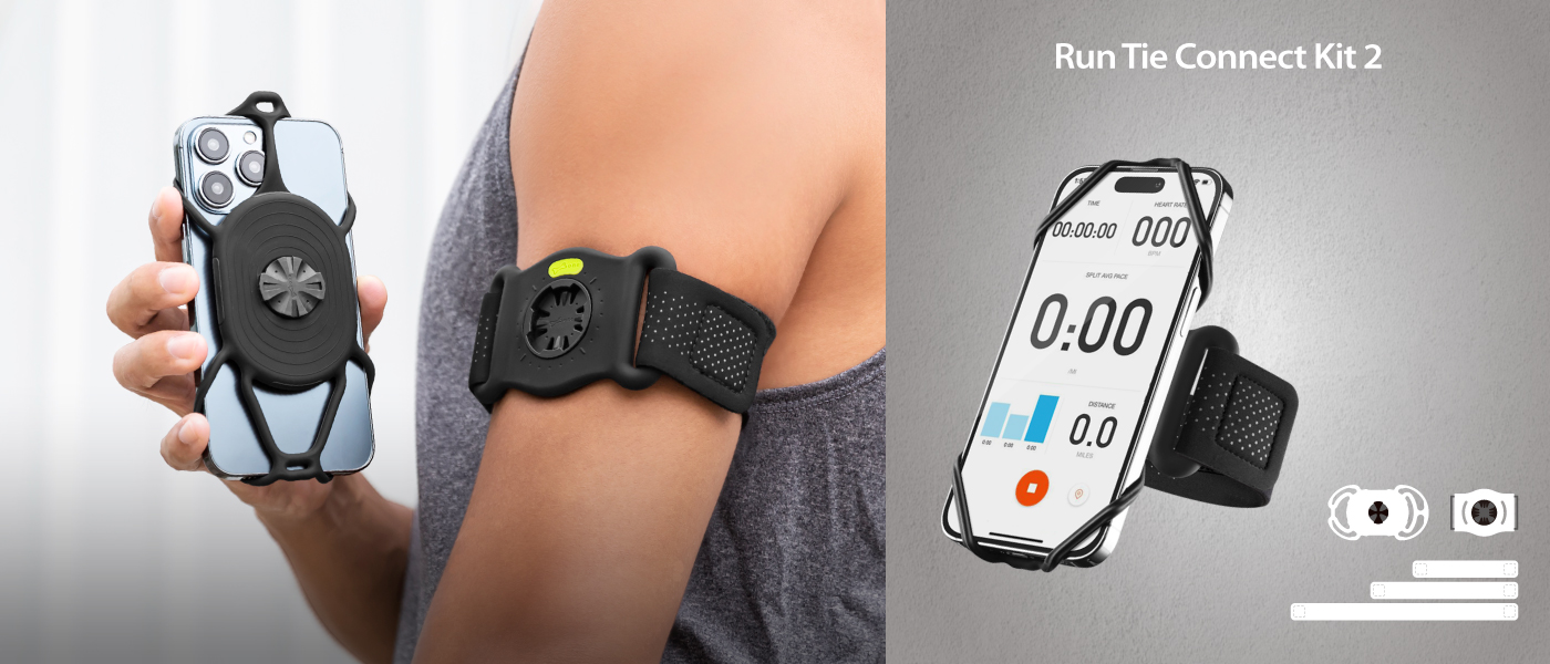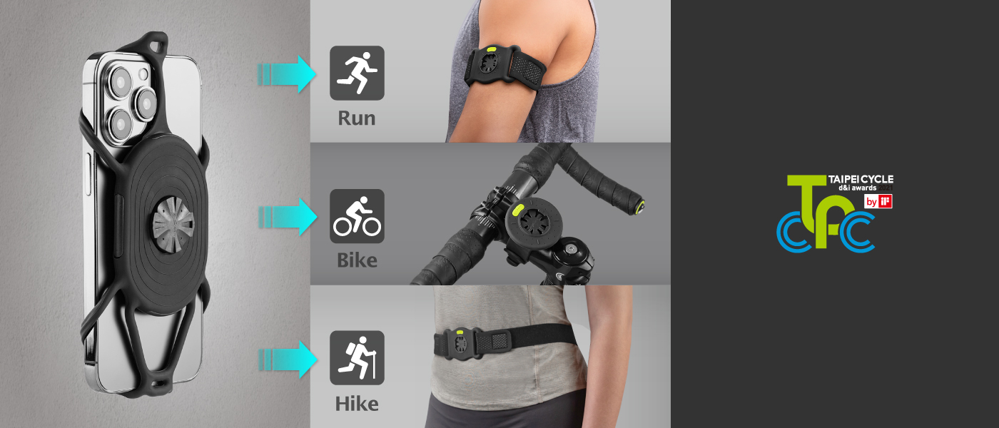 『 Tie Connect 綁接系統 』可快速拆裝手機,切換跑步、騎車、登山三種運動模式。